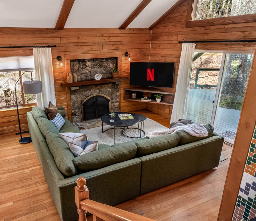 Tucked away on two private acres, Foxie Moxie is a serene mountain retreat where nature and comfort blend seamlessly. Towering trees sway in the breeze, vibrant rhododendrons paint the landscape with seasonal color, and the soothing melody of a babbling stream sets the perfect backdrop for relaxation. As the sun filters through skylights and large windows, the warm glow of natural light fills the space, creating an inviting and peaceful atmosphere that makes you feel at home the moment you arrive. Whether you're sipping your morning coffee on the deck, watching wildlife from the comfort of the living room, or stargazing under a clear mountain sky, you'll feel truly connected to the beauty of the outdoors.